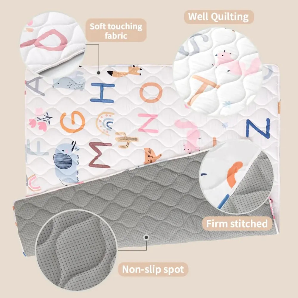 - Plegable y portátil: ¡No más rompecabezas! Nuestra alfombra de juego es una sola pieza duradera que se puede plegar y guardar fácilmente. Puedes doblarla y guardarla en una esquina cuando no la uses. Y es perfecta para jugar en movimiento.