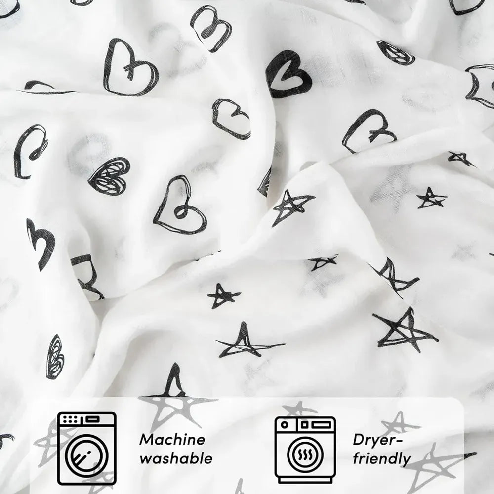 - Lavable a máquina: diseñada para satisfacer las necesidades de su vida, esta manta de muselina para bebé se puede lavar a máquina. Circulación a baja velocidad, secado a baja temperatura o secado en superficie plana, no usar blanqueador.