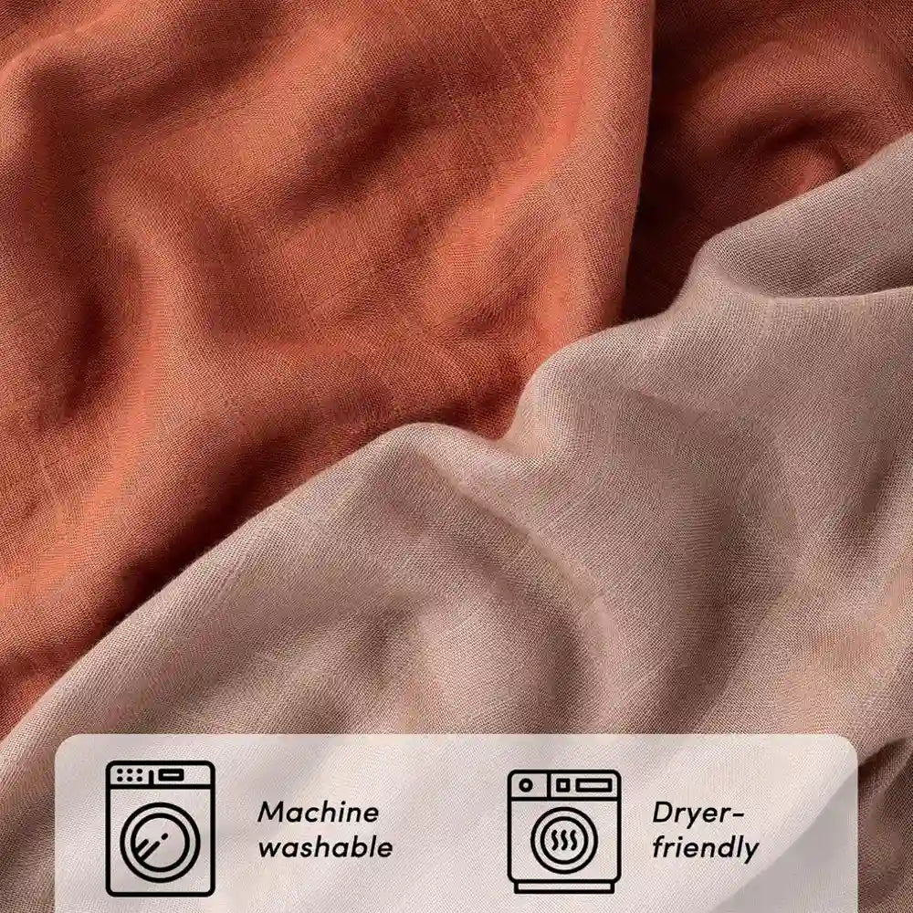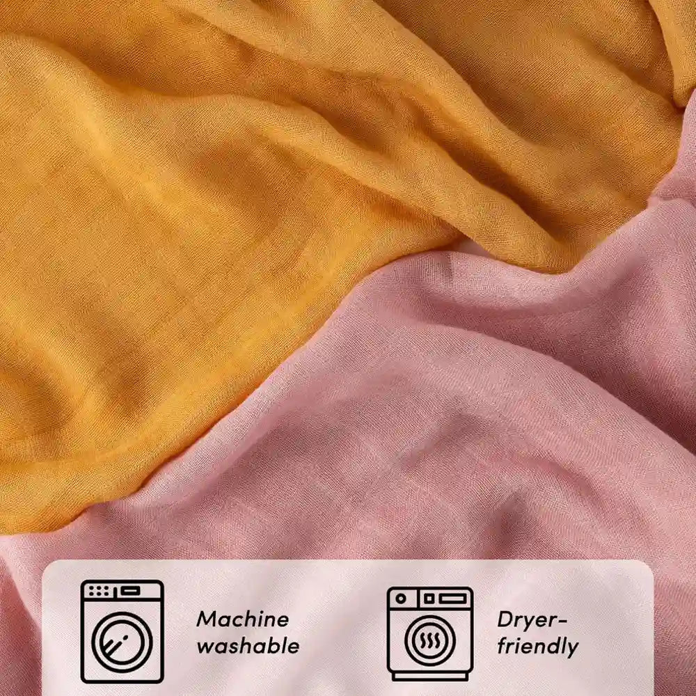 - Lavable a máquina: diseñada para satisfacer las necesidades de su vida, esta manta de muselina para bebé se puede lavar a máquina. Circulación a baja velocidad, secado a baja temperatura o secado en superficie plana, no usar blanqueador.