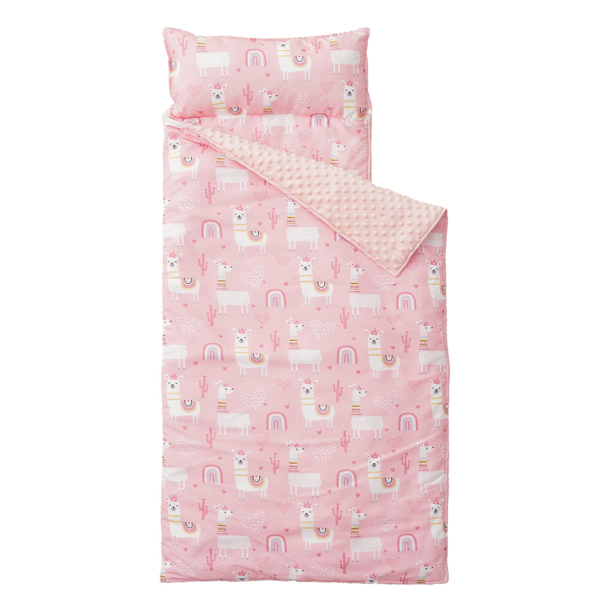 BunnikinsClover Toddler Nap Mat is an all-in-one portable bedding solution designed for daycare, preschool, travel, and home use. This cozy sleeping mat includes a soft blanket, a removable pillow, and rolls up with a secure strap for easy carrying.